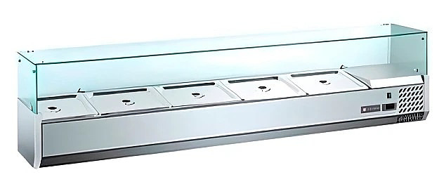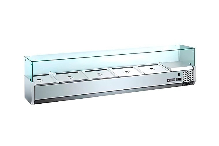 Настольная витрина Tatra TVR1600-7GN1/3 используется на предприятиях общественного питания и торговли для демонстрации и кратковременного хранения ингредиентов, салатов и готовых блюд в гастроемкостях. Модель оснащена встроенным холодильным агрегатом с боковым расположением и электронным контроллером с цифровым дисплеем. Корпус выполнен из высококачественной нержавеющей стали, купол – из прямоугольных стеклянных панелей.