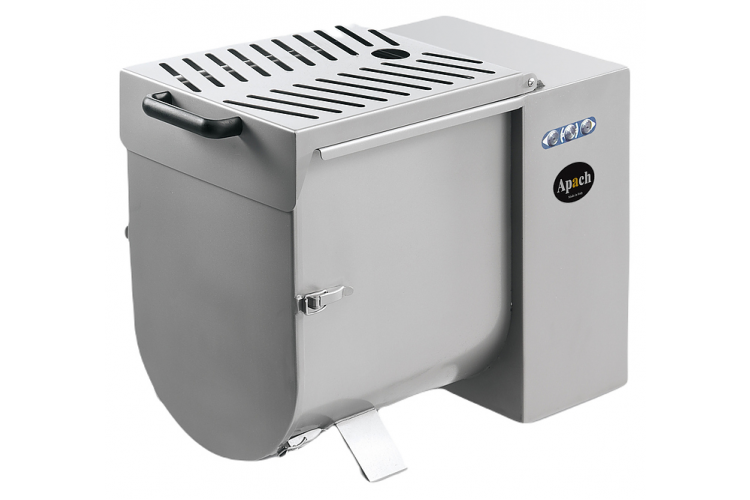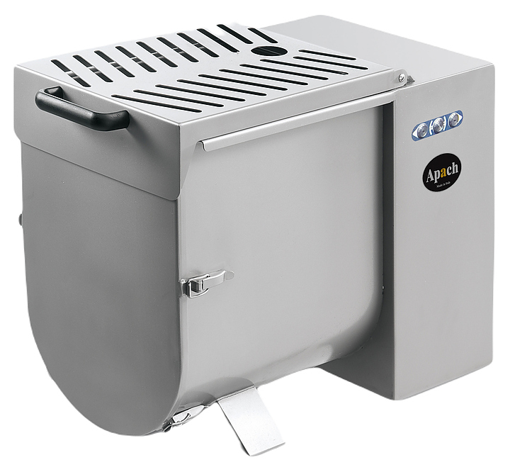 Фаршемешалка Apach AMK50 используется на предприятиях общественного питания и торговли для перемешивания измельченного мяса или рыбы в однородную смесь. Вымешивающее устройство лопастного типа позволяет получить фарш однородной консистенции. Модель оснащена крышкой с микровыключателем, функцией реверса, высокими ножками и колесами. Корпус и съемная лопасть выполнены из нержавеющей стали AISI 304.