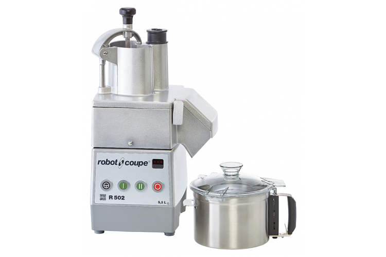Кухонный процессор Robot Coupe R502G используется на предприятиях общественного питания и торговли для всех видов нарезки, замешивания и измельчения продуктов питания. Насадка-овощерезка оснащена 2 воронками: полукруглой и цилиндрической. Аппарат представляет собой куттер и овощерезку в одном виде. Корпус мотора выполнен из металла, чаша и лезвия - из нержавеющей стали.