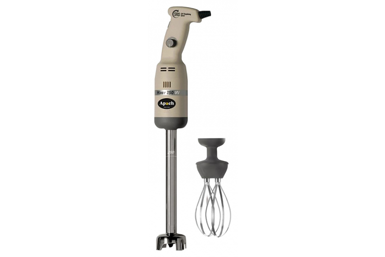 Ручной миксер Apach AHM250V250C предназначен для приготовления картофельного и овощного пюре, супов-пюре, соусов, муссов и жидкого теста на предприятиях общественного питания и торговли. Модель оснащена двигателем с защитой от перегрузок, эргономичной ручкой и ножом с 2 лезвиями. Корпус выполнен из пластика, съемные насадки с соединительными элементами - из высококачественного полимера, все части насадок, находящиеся в контакте с продуктом, - из нержавеющей стали.