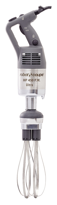Ручной миксер Robot Coupe MP 450 FW Ultra предназначен для приготовления супов-пюре, майонеза, соусов, муссов, картофельного и овощного пюре, взбивания жидкого теста для блинчиков на предприятиях общественного питания и торговли. Миксер легко разбирается, что позволяет поддерживать его в чистоте.