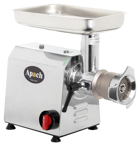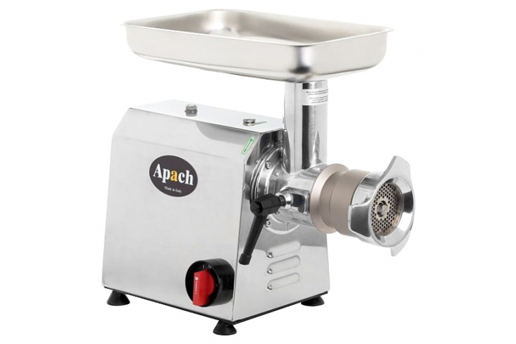 Мясорубка Apach ATI22UT предназначена для измельчения мяса и рыбы в фарш, измельчения котлетной массы и набивки колбас на предприятиях общественного питания и торговли. Модель оснащена усиленным редуктором и вентилируемым асинхронным двигателем с защитой от перегрузок. Ножи, решетки, лоток и горловина выполнены из нержавеющей стали, мясорубочная часть и шнек - из пищевого чугуна, толкатель - из ABS пластика.
