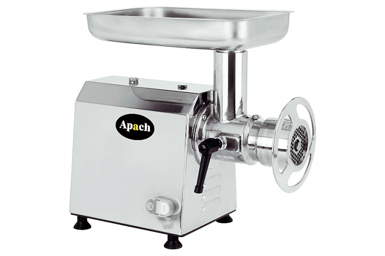 Мясорубка Apach ATI22UT/SS предназначена для измельчения мяса и рыбы в фарш, измельчения котлетной массы и набивки колбас на предприятиях общественного питания и торговли. Модель оснащена усиленным редуктором и вентилируемым асинхронным двигателем с защитой от перегрузок. Ножи, решетки, лоток, горловина и мясорубочная часть выполнены из нержавеющей стали.