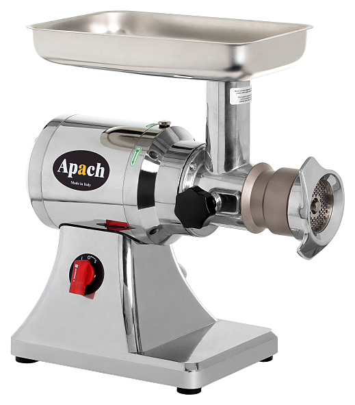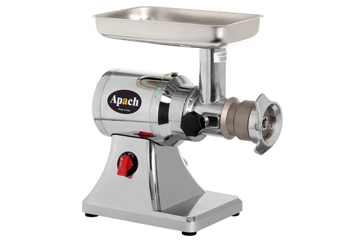 Мясорубка Apach ATS12U серии Cook Line предназначена для измельчения мяса и рыбы в фарш, измельчения котлетной массы и набивки колбас на предприятиях общественного питания и торговли. Модель оснащена усиленным редуктором и вентилируемым асинхронным двигателем с защитой от перегрузок. Ножи, решетки, лоток и горловина выполнены из нержавеющей стали, мясорубочная часть и шнек - из пищевого чугуна, толкатель - из ABS пластика.