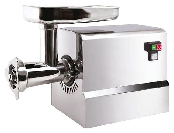 Электрическая шнековая мясорубка RGV TPM 12 предназначена для измельчения мяса, птицы и рыбы в фарш, повторного измельчения котлетной массы и набивки колбас на предприятиях пищевой промышленности, общественного питания и торговли. Модель оснащена электромеханическим управлением. Корпус выполнен из нержавеющей стали марки AISI 430, мясорубочная часть - из нержавеющей стали AISI 304, решетка – из нержавеющей стали.