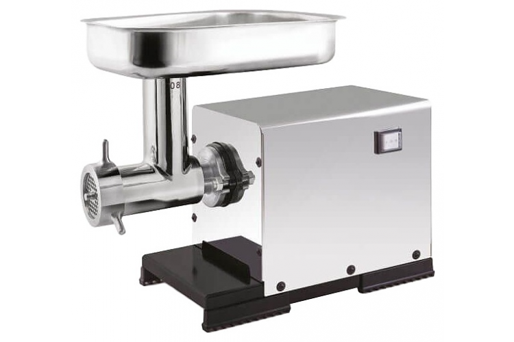 Электрическая шнековая мясорубка RGV TPM 8 предназначена для измельчения мяса, птицы и рыбы в фарш, повторного измельчения котлетной массы и набивки колбас на предприятиях пищевой промышленности, общественного питания и торговли. Модель оснащена электромеханическим управлением. Корпус выполнен из нержавеющей стали марки AISI 430, мясорубочная часть - из нержавеющей стали AISI 304, решетка – из нержавеющей стали.