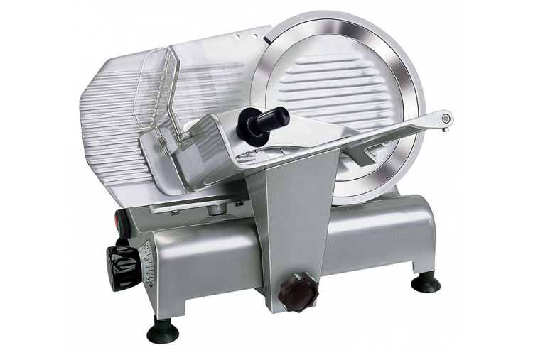 Профессиональный мотор с функцией принудительной вентиляции исключает возможность перегрева оборудования, а также делает его работу практически бесшумной. Слайсер оснащен съемным устройством для заточки ножа с двойным наждаком. Поддон для продуктов, перемычка для регулирования толщины среза, кольцо, покрывающее лезвие, и держатель продуктов выполнены из алюминия, отполированного путем анодирования, что обеспечивает их гигиеническую чистоту и защиту от коррозии.