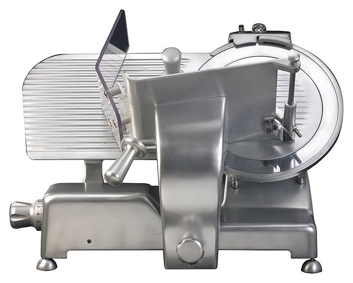 Профессиональный мотор с функцией принудительной вентиляции исключает возможность перегрева оборудования, а также делает его работу практически бесшумной. Слайсер оснащен фиксированным устройством для заточки ножа с двойным наждаком. Поддон для продуктов и перемычка для регулирования толщины среза выполнены из алюминия, отполированного путем анодирования, что обеспечивает их гигиеническую чистоту и защиту от коррозии.