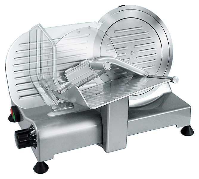 Профессиональный мотор с функцией принудительной вентиляции исключает возможность перегрева оборудования, а также делает его работу практически бесшумной. Слайсер оснащен съемным устройством для заточки ножа с двойным наждаком. Поддон для продуктов, перемычка для регулирования толщины среза и кольцо, покрывающее лезвие, выполнены из алюминия, отполированного путем анодирования, что обеспечивает их гигиеническую чистоту и защиту от коррозии.