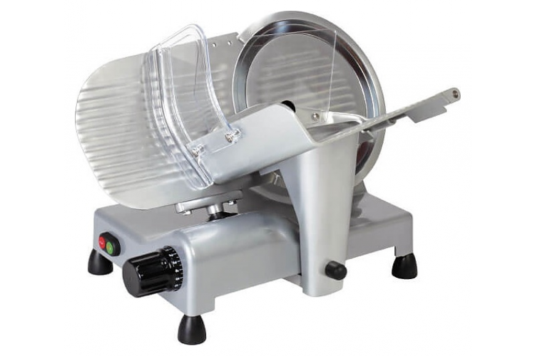 Слайсер RGV Lusso 300 A-L Prof предназначен для нарезки мяса, сыров, рыбы, хлеба и других гастрономических изделий на ровные ломтики на предприятиях общественного питания, торговли и пищевой промышленности. Модель оснащена наклонным дисковым ножом. Основание выполнено из алюминия, покрытого пригодной для контакта с пищевыми продуктами краской, лезвие – из закаленной шлифованной стали с твердым хромированным покрытием, крышка ножа, лоток для продуктов, перегородка для регулировки нарезки и фиксированное защитное кольцо лезвия – из анодированого алюминия с полированным покрытием, защитный экран – из плексигласа.