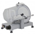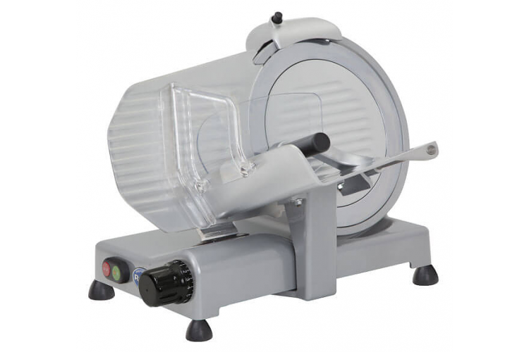 Слайсер RGV Luxury 275/S PROF предназначен для нарезки мяса, сыров, колбасных изделий, хлеба и других гастрономических изделий на ровные ломтики на предприятиях общественного питания, торговли и пищевой промышленности. Модель оснащена встроенным затачивающим устройством. Литой корпус выполнен из окрашенного алюминия, нож - из закаленной стали с тефлоновым покрытием, крышка лезвия и лоток для мяса - из литого анодированного алюминия, держатель - из алюминия.