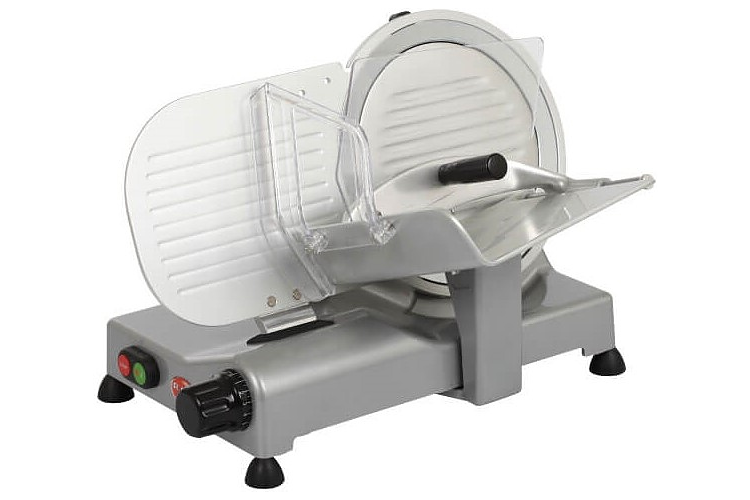 Слайсер RGV New Lusso 25 GL предназначен для использования на предприятиях общественного питания, торговли, а также в производственных цехах, деятельность которых связана с выпуском гастрономических товаров, для нарезки мяса, сыра, колбасных изделий и других продуктов питания на ровные и равные ломтики. Модель оснащена съемным устройством для заточки ножа с двойным наждаком. Поддон для продуктов, перемычка для регулирования толщины среза и кольцо фиксации лезвия выполнены из анодированного алюминия.