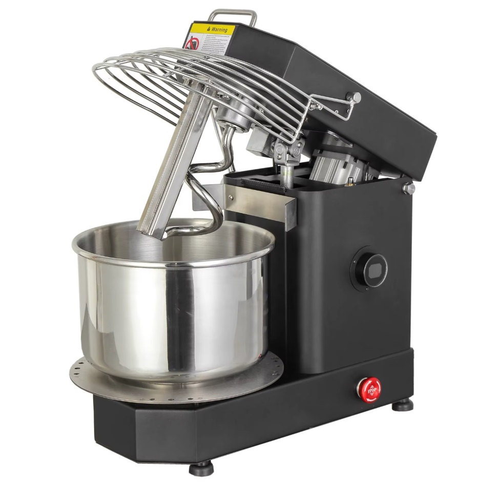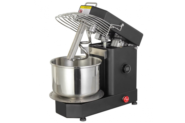 Тестомесильная машина со встроенным термометром, со съемной дежой объемом 10 л и с подъемным месильным органом.
