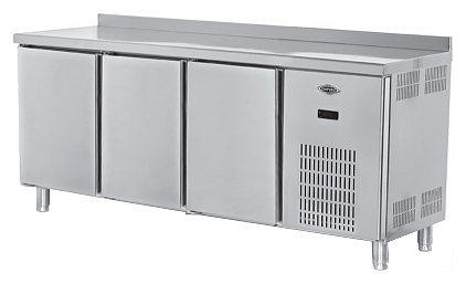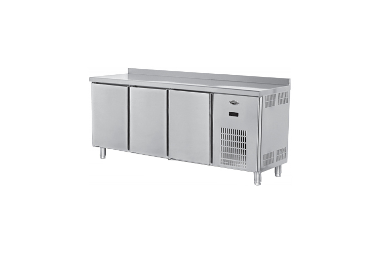 Холодильный стол Empero EMP.200.70.01-CLS предназначен для хранения продуктов и обработки ингредиентов на рабочей поверхности на предприятиях общественного питания и торговли. Модель оснащена цифровой панелью управления, бортом, 3 распашными дверьми, регулируемой по высоте полкой-решеткой и регулируемыми ножками. Корпус и ножки выполнены из нержавеющей стали, трубка испарителя - из меди, ребра - из алюминия, внутреннее покрытие - из пластика, теплоизоляция - из полиуретана высокой плотности без CFC и HCFC.