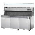 Стол для пиццы Chef Line LTPZ111TURD38 предназначен для обработки ингредиентов, используемых для приготовления пиццы, охлаждения и кратковременного хранения продуктов на предприятиях общественного питания и торговли. Модель оснащена электронной панелью управления и самозакрывающимися дверями. Внутренняя отделка, стойки и направляющие, ножки и дверные ручки выполнены из высококачественной стали, стойкой к коррозии, с прочностью, позволяющей ей долго сохранять свой внешний вид и обеспечивать длительный срок службы изделия, столешница - из гранита.