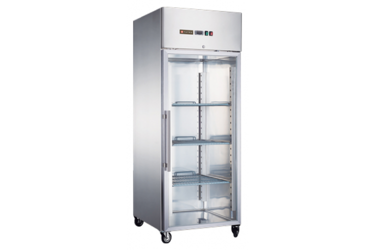 Холодильный шкаф Tatra TRC700 TN G предназначен для демонстрации, охлаждения и кратковременного хранения продуктов и напитков на предприятиях общественного питания и торговли. Модель оснащена встроенным холодильным агрегатом с верхним расположением, колесами, 2 из которых со стопором, замком и самозакрывающеяся стеклянной дверью со съемным магнитным уплотнителем. Корпус и камера выполнены из высококачественной нержавеющей стали.