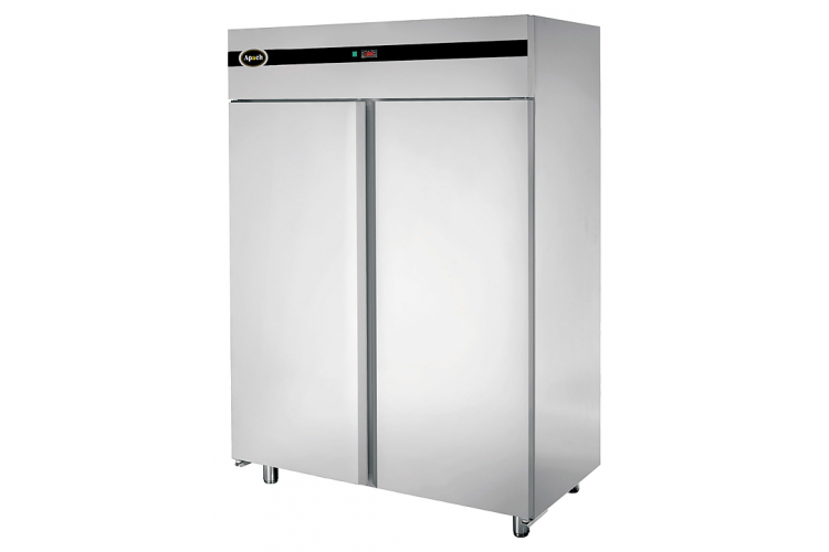 Морозильный шкаф Apach F1400BT DOM PLUS предназначен для заморозки и долговременного хранения продуктов, полуфабрикатов, напитков и мороженого на предприятиях общественного питания и торговли. Модель оснащена электронной панелью управления, самозакрывающимися дверями с магнитным уплотнителем, внутренней подсветкой и регулируемыми по высоте ножками. Корпус и внутренняя камера выполнены из нержавеющей стали, изоляция - из пенополиуретана толщиной 60 мм.