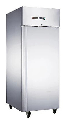 Морозильный шкаф Tatra TRC500 BT предназначен для кратковременного хранения предварительно замороженных пищевых продуктов на предприятиях общественного питания и торговли. Модель оснащена морозильной камерой с правосторонней глухой распашной дверью, встроенным компрессорным холодильным агрегатом и расположенным на верхней фронтальной панели электронным контроллером с цифровым дисплеем индикации. Вертикально ориентированный корпус выполнен из высококачественной нержавеющей стали, задняя стенка – из оцинкованной стали.