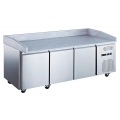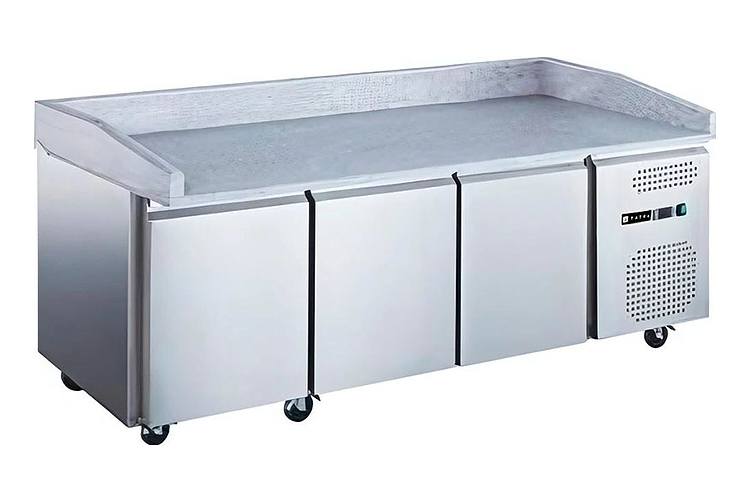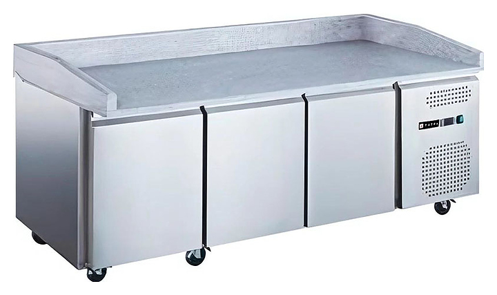 Стол Tatra TPZEN3 STB предназначен для приготовления пиццы на предприятиях общественного питания и торговли. Модель оснащена встроенным холодильным агрегатом с боковым расположением, цифровым термостатом, бортом с 3 сторон, 3 самозакрывающимися глухими дверьми с магнитным уплотнителем и колесами, 2 из которых со стопорами. Корпус выполнен из высококачественной нержавеющей стали, столешница - из камня.
