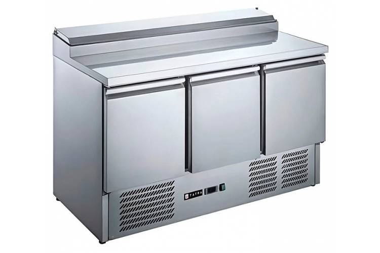 Стол Tatra TPZGNL3 VC предназначен для приготовления пиццы на предприятиях общественного питания и торговли. Модель оснащена встроенным холодильным агрегатом с нижним расположением, цифровым термостатом, 3 глухими дверьми с магнитным уплотнителем, отделением для гастроемкостей с крышкой и регулирумыми по высоте ножками. Корпус и столешница выполнены из высококачественной нержавеющей стали, крышка - из металла.