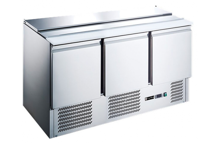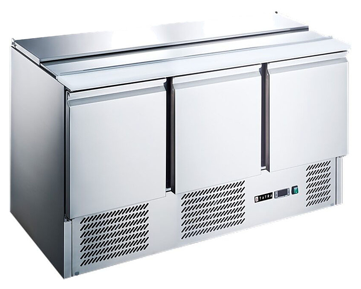 Стол Tatra TSLGNL3 NC предназначен для кратковременного хранения ингредиентов и приготовления салатов, холодных закусок, сэндвичей и других блюд на предприятиях общественного питания и торговли. Модель оснащена встроенным холодильным агрегатом с боковым расположением, цифровым термостатом, 3 глухими дверьми с магнитным уплотнителем и регулируемыми по высоте ножками. Корпус выполнен из высококачественной нержавеющей стали, столешница для нарезки - из нейлона.