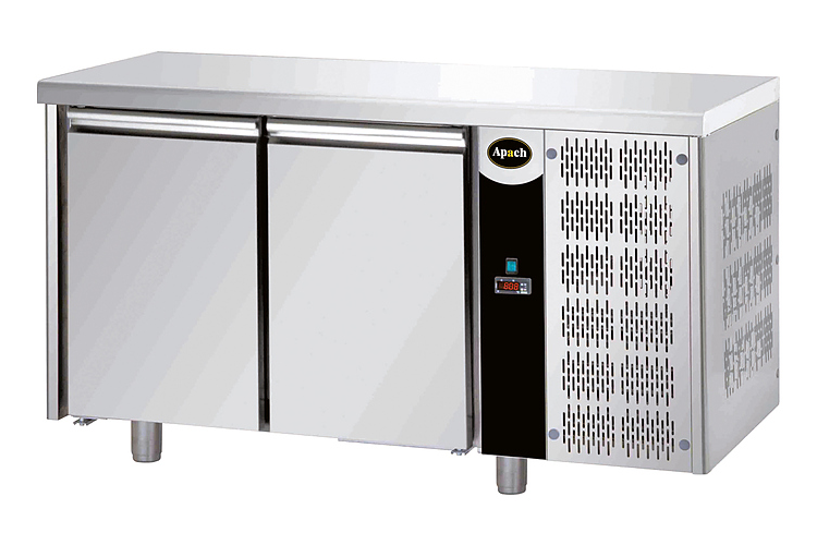 Холодильный стол Apach AFM 02 предназначен для раскатки теста, обработки, охлаждения и кратковременного хранения продуктов, полуфабрикатов и напитков на предприятиях общественного питания и торговли. Модель с электронной панелью управления оснащена самозакрывающимися дверями с магнитным уплотнителем. Корпус и внутренняя камера изготовлены из нержавеющей стали AISI 306, изоляция - из пенополиуретана толщиной 40 мм.