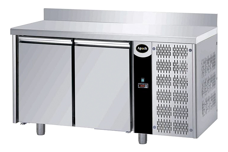 Холодильный стол Apach AFM 02AL предназначен для раскатки теста, обработки, охлаждения и кратковременного хранения продуктов, полуфабрикатов и напитков на предприятиях общественного питания и торговли. Модель с электронной панелью управления оснащена самозакрывающимися дверями с магнитным уплотнителем. Корпус и внутренняя камера изготовлены из нержавеющей стали AISI 304, изоляция - из пенополиуретана толщиной 40 мм.