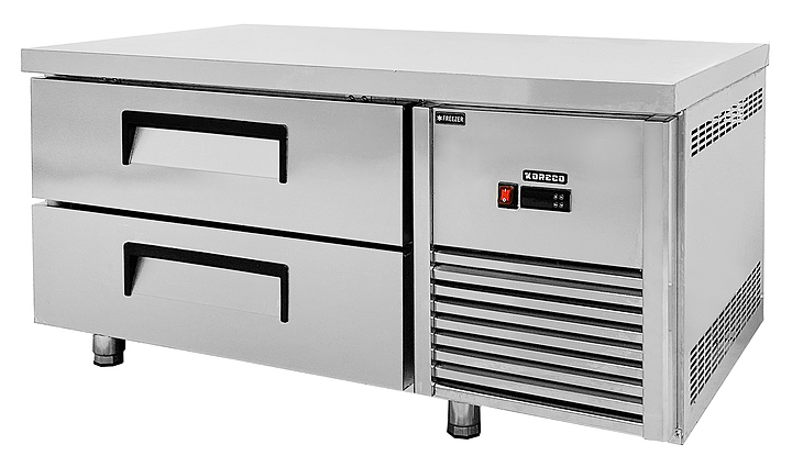 Морозильный стол Korecо MC R127D LT предназначен для установки тепловой линии MC глубиной 600-700 мм обработки ингредиентов и кратковременного и длительного хранения предварительно замороженных пищевых продуктов на предприятиях общественного питания и торговли. Модель оснащена расположенным справа встроенным холодильным агрегатом, 2 холодильными ящиками под гастроемкости 2хGN1 с легкозаменяемыми магнитными уплотнителями и регулируемыми по высоте ножками. Теплоизолированный корпус выполнен из высококачественной нержавеющей стали марки AISI 201.
