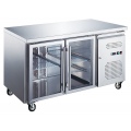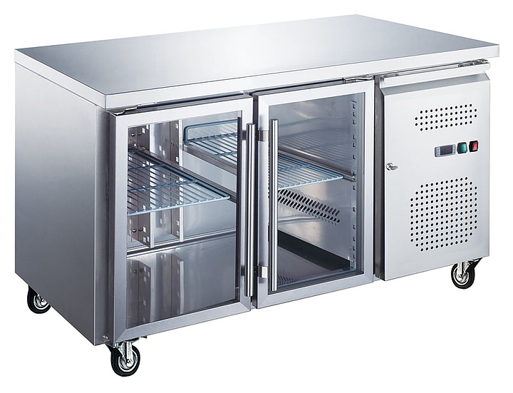 Холодильный стол Tatra TRTGN2 TN G предназначен для хранения предварительно охлажденных ингредиентов и готовых блюд на предприятиях общественного питания и торговли. Модель оснащена встроенным холодильным агрегатом с боковым расположением, цифровым термостатом, 2 прозрачными самозакрывающимися дверьми с магнитным уплотнителем и 4 колесами, 2 из которых со стопором. Корпус и столешница выполнены из высококачественной нержавеющей стали, двери - из стекла.
