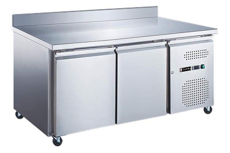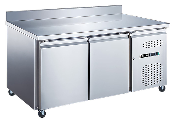 Холодильный стол Tatra TRTGN2 TN SB предназначен для хранения предварительно охлажденных ингредиентов и готовых блюд на предприятиях общественного питания и торговли. Модель оснащена встроенным холодильным агрегатом с боковым расположением, цифровым термостатом, бортом, 2 глухими самозакрывающимися дверьми с магнитным уплотнителем и 4 колесами, 2 из которых со стопором. Корпус и столешница выполнены из высококачественной нержавеющей стали.