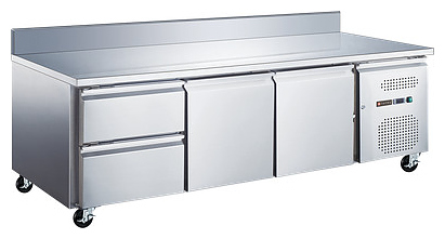 Холодильный стол Tatra TRTGN2D2 TN SB предназначен для хранения предварительно охлажденных мясных и рыбных полуфабрикатов, заготовок для салатов, молочной продукции, напитков, а также раскатки теста и обработки пищевых продуктов на предприятиях общественного питания и торговли. Модель оснащена встроенным компрессорным холодильным агрегатом с боковым расположением, электронным контроллером с цифровым дисплеем индикации на фронтальной панели, столешницей с задним бортом, холодильной камерой с 3 секциями: 1 – с 2 выдвижными ящиками и 2 – с распашной дверью в каждой. Корпус выполнен из высококачественной нержавеющей стали.