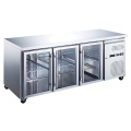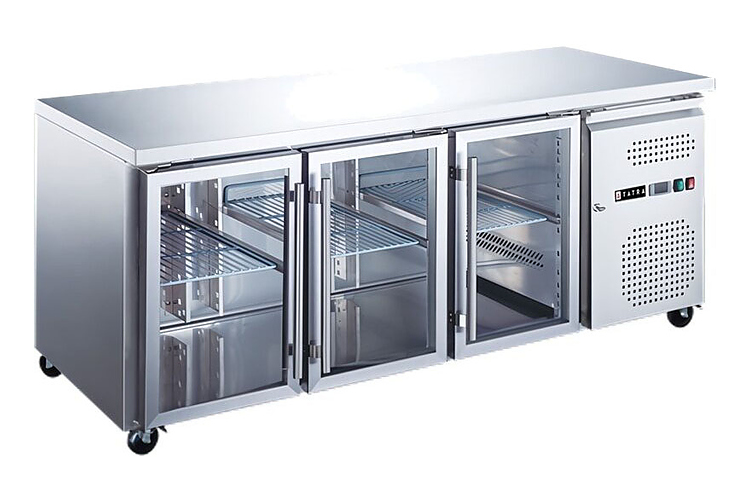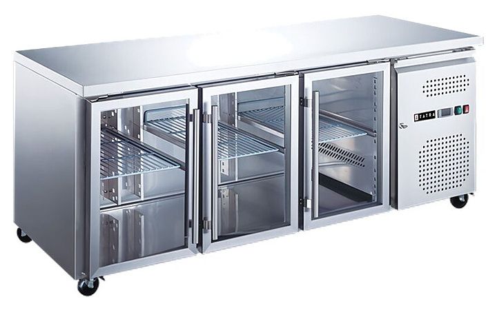 Холодильный стол Tatra TRTGN3 TN G предназначен для хранения предварительно охлажденных ингредиентов и готовых блюд на предприятиях общественного питания и торговли. Модель оснащена встроенным холодильным агрегатом с боковым расположением, цифровым термостатом, 3 прозрачными самозакрывающимися дверьми с магнитным уплотнителем и 4 колесами, 2 из которых со стопором. Корпус и столешница выполнены из высококачественной нержавеющей стали, двери - из стекла.