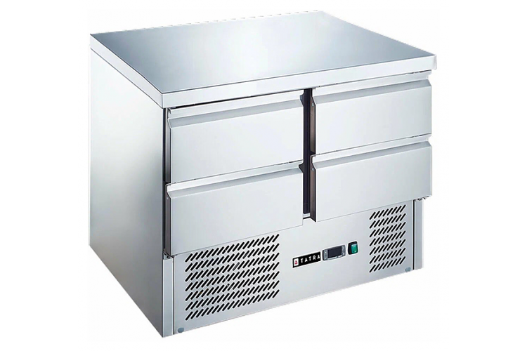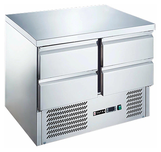 Холодильный стол Tatra TRTGNLD4 TN предназначен для хранения предварительно охлажденных ингредиентов и готовых блюд на предприятиях общественного питания и торговли. Модель оснащена встроенным холодильным агрегатом с нижним расположением, цифровым термостатом и 4 ящиками. Корпус и столешница выполнены из высококачественной нержавеющей стали.
