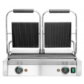 Прижимной гриль Kocateq GH 813A GL линии Green Line предназначен для жарки мяса, птицы, рыбы и овощей, приготовления стейков, гамбургеров и горячих сэндвичей на предприятиях общественного питания и торговли. Модель оснащена механической панелью управления, аналоговым термостатом, кнопкой вкл/выкл гриля. Корпус выполнен из нержавеющей стали AISI 201, 2 верхние откидные ребристые пластины и нижняя ребристая пластина изготовлены из литой стали с антипригарным покрытием, регулируемые ножки - из пластика.