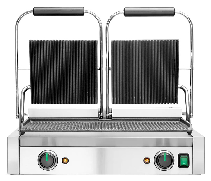 - Быстрое и равномерное приготовление за счет нагрева продукта с 2 сторон