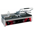 Прижимной гриль Tatra TCG 3627 RR RS предназначен для жарки мяса, птицы, рыбы, овощей и быстрого разогрева полуфабрикатов на предприятиях общественного питания и торговли. Модель оснащена электромеханической панелью управления с терморегулятором и индикаторами питания и нагрева, системой независимого управления каждой зоной нагрева, 2 раздельными верхними и нижними поверхностями и емкостью для сбора жира. Корпус выполнен из нержавеющей стали.