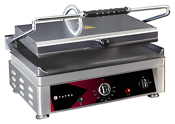 Прижимной гриль Tatra TCG 6040 RR DT предназначен для жарки мяса, птицы, рыбы, овощей и быстрого разогрева полуфабрикатов на предприятиях общественного питания и торговли. Модель оснащена электромеханической панелью управления с выключателем питания, терморегулятором и индикаторами питания и нагрева. Корпус выполнен из нержавеющей стали.