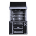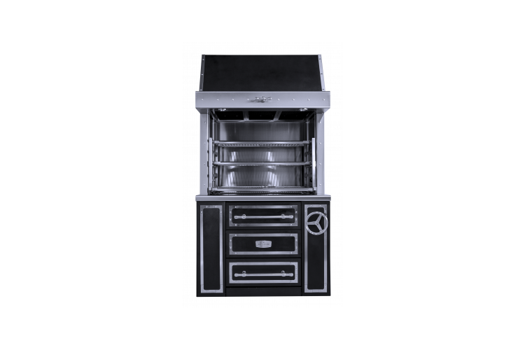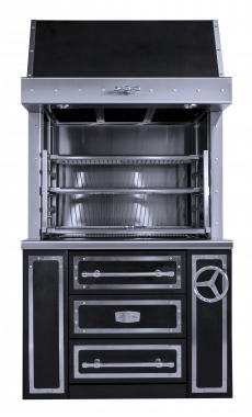 Обновленная и усовершенствованная модель гриль-мангала с увеличенным очагом из шамотного кирпича, с чугунными колосниками. Обеспечивает полный функционал ROBATA GRILL. Произведен полностью из высококачественной нержавеющей стали, покрыт специальной порошковой краской черного цвета в базовой версии, облицован молдингами из нержавеющей стали, оснащен яркой подсветкой, толщина столешницы гриля 3 мм(выполнена из нерж. стали), гриль-мангал укомплектован:2 решетками для жарки из н/стали, 4 сетками-решетками из н/стали для стейков/рыбы, овощей; 5 уровней для решеток, выдвижной ящик для золы и инвентарный ящик, подъемный механизм решеток для жарки, подходит для открытой и закрытой веранды, габаритные размеры нетто 1243х776х2228, масса 340 кг, габариты брутто 1350х1000х1840, масса брутто 365 кг