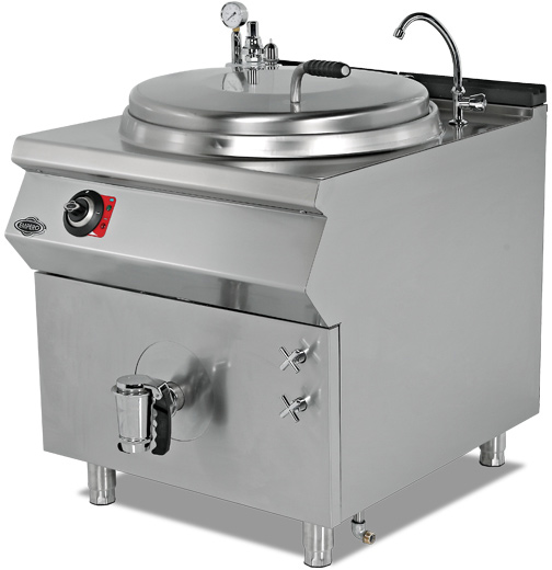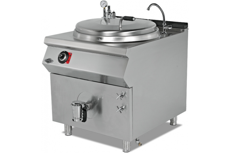 Электрический варочный котел Empero EMP.PLS.KTE.250 серии 900+ предназначен для приготовления первых и третьих блюд, соусов и десертов, а также для кипячения воды на предприятиях пищевой промышленности, общественного питания и торговли. Модель оснащена емкостью с круглой крышкой, трубчатыми электронагревательными элементами (ТЭНами), расположенными на фронтальных стенках краном для розлива продукта и электромеханической панелью управления с 2 поворотными переключателями. Корпус и емкость выполнены из высококачественной нержавеющей стали.
