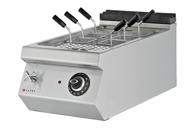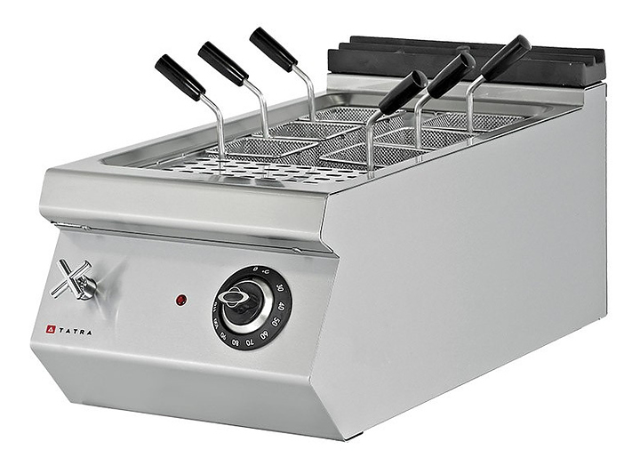 Электрическая макароноварка Tatra TEP.47 используется на предприятиях общественного питания и торговли для варки пельменей, вареников, макаронных изделий, кукурузы, фрикаделек и овощей. Модель оснащена термостатом регулировки температуры, кранами для залива и слива воды, регулируемыми ножками. Корпус выполнен из нержавеющей стали.