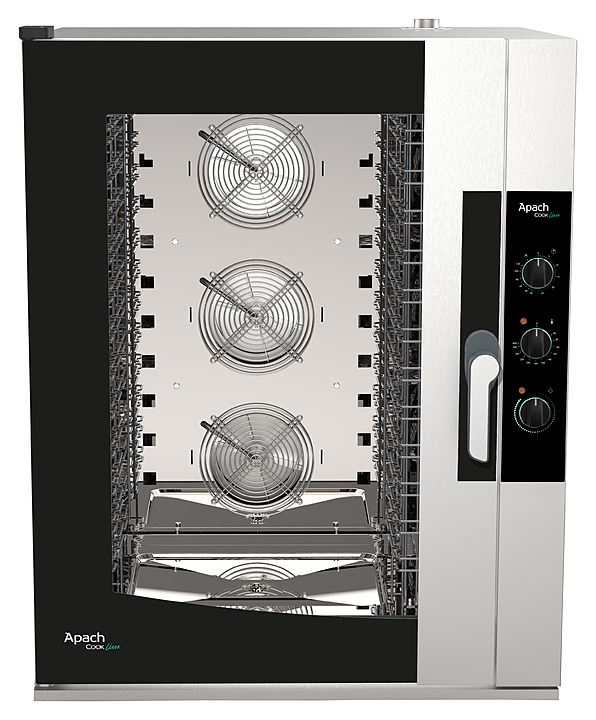 Пароконвектомат Apach AP10QM предназначен для обжаривания, приготовления на пару, бланширования, запекания и других видов тепловой обработки продуктов на предприятиях общественного питания и торговли. Подсветка камеры осуществляется галогеновой лампой. Камера легко чистится благодаря закругленным углам. Корпус выполнен из нержавеющей стали, дверца - из двойного закаленного стекла.