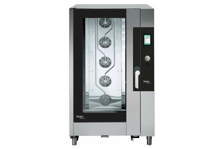 Пароконвектомат Apach AP40QT предназначен для обжаривания, приготовления на пару, бланширования, запекания и других видов тепловой обработки продуктов на предприятиях общественного питания и торговли. Модель оснащена панелью управления Touch Screen, подсветкой и 5 вентиляторами. Корпус выполнен из нержавеющей стали.