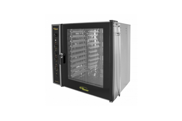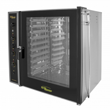 Новая модель бойлерного пароконвектомата с возможностью регулировки скорости вращения вентиляторов, 10 уровней под гастроемкости GN 1/1 325х530 мм или пекарский лист 600х400 мм, шаг уровней 80 мм, электромеханическое управление,4 режима работы, 3 мощных вентилятора с реверсом, автоматическое поддержание температуры в пределах 50-320С, система автоматического и ручного пароувлажнения, двойная система парообразования (парогенератор+инжекционный впрыск), дверь пароконвектомата из двойного термостойкого стекла, открывающееся внутреннее стекло, подсветка камеры, душ, 16 кВт в режиме конвекция и пароконвекция, 6 кВт в режиме чистого пара, полностью из нерж/стали, г.нетто 1076х867х1114мм, 222кг; г.брутто:1160х1000х1330 мм, 259кг