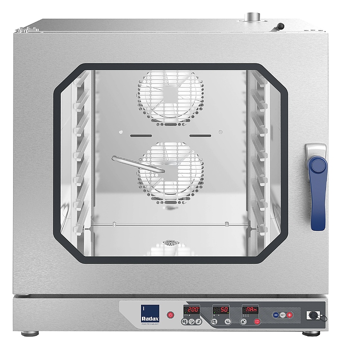 Пароконвектомат Radax TOLSTOY TL07DY0L предназначен для приготовления различных блюд, выпечки хлебобулочных и кондитерских изделий на предприятиях общественного питания и торговли. Модель оснащена подсветкой, цифровым управлением и дверцей с левым открыванием.