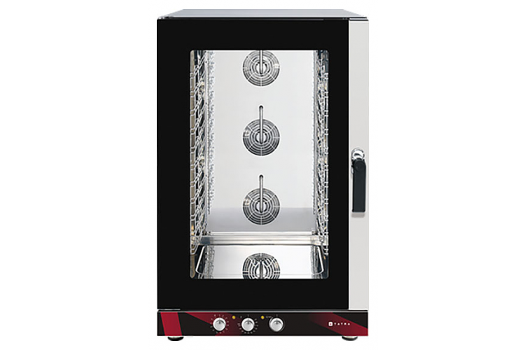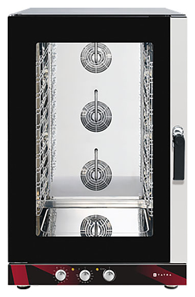 Пекарский пароконвектомат Tatra TBI 10 M.V предназначен для выпекания кондитерских и хлебобулочных изделий из свежего и замороженного теста с применением режимов сочетания конвекции и пара. Модель оснащена электромеханической панелью управления, инжекторным пароувлажнением, галогеновым освещением камеры, закругленными углами для легкой очистки, таймером и 3 реверсивными вентиляторами для равномерного приготовления. Двойное жаростойкое стекло сокращает теплопотери и защищает персонал от ожогов. Корпус и камера выполнены из нержавеющей стали.
