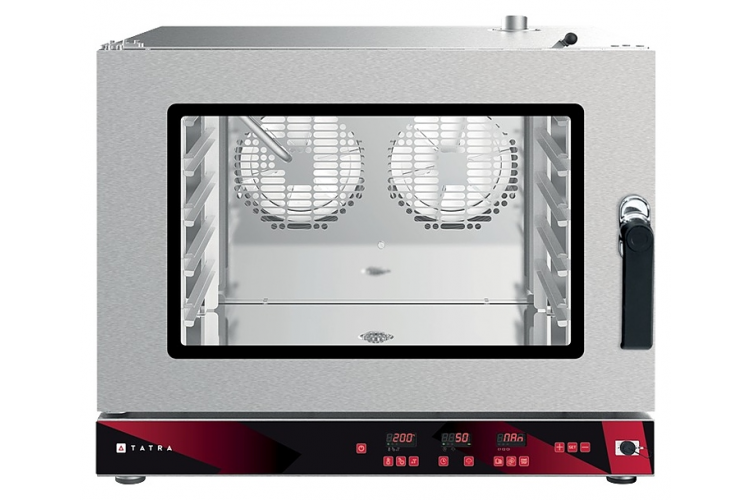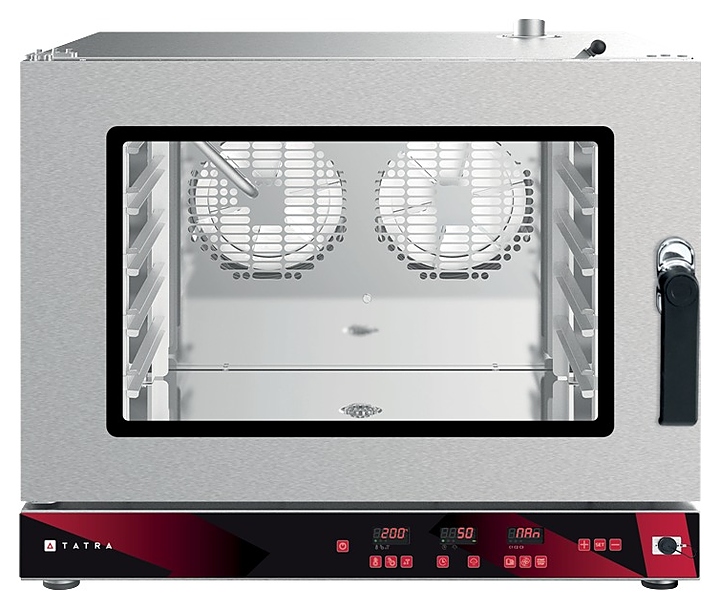 Пароконвектомат Tatra TC05D2CL предназначен для обжаривания, приготовления на пару, бланширования, запекания и других видов тепловой обработки продуктов на предприятиях общественного питания и торговли. Модель оснащена электронной панелью управления и 2 реверсивными вентиляторами с 2 скоростями вращения. Корпус и камера выполнены из нержавеющей стали, двойная дверь - из закаленного стекла.