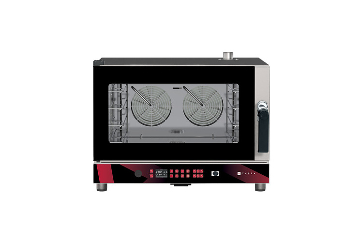 Пароконвектомат Tatra TPI 05 DC.5VN предназначен для обжаривания, приготовления на пару, бланширования, запекания и других видов тепловой обработки продуктов на предприятиях общественного питания и торговли. Модель оснащена электронной панелью управления с 2,4-дюймовым LCD экраном, USB портом, термощупом, 2 реверсивными вентиляторами и галогеновой подстветкой. Корпус и камера выполнены из нержавеющей стали.