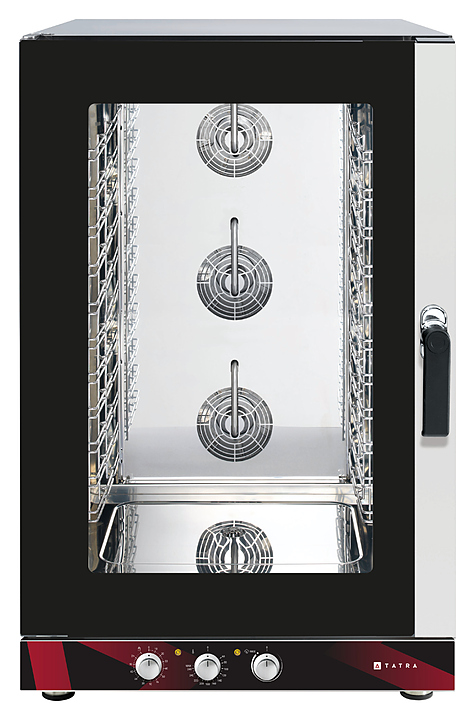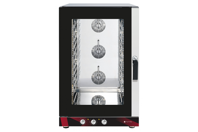 Пароконвектомат Tatra TPI 12 M.V предназначен для обжаривания, приготовления на пару, бланширования, запекания и других видов тепловой обработки продуктов на предприятиях общественного питания и торговли. Модель оснащена универсальными направляющими под гастроемкости GN 1/1 и листами для выпечки 600x400 мм, 3 реверсивными вентиляторами, галогеновой подсветкой и таймером от 0 до 120 минут. Корпус и камера выполнены из нержавеющей стали.