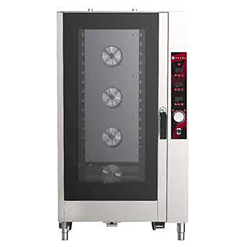 Пароконвектомат Tatra TPI 16 DC.2V предназначен для выпекания кондитерских и хлебобулочных изделий из свежего и замороженного теста на предприятиях общественного питания и торговли. Модель оснащена вкатной тележкой на 16 уровней, реверсивными 2-скоростными вентиляторами и галогеновой подсветкой. Корпус и камера выполнены из нержавеющей стали.