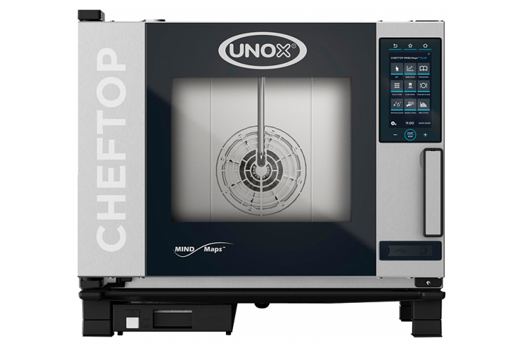Пароконвектомат UNOX XEVC-0511-EPRM серии CHEFTOP MIND.Maps™ PLUS предназначен для приготовления различных блюд, выпечки хлебобулочных и кондитерских изделий на предприятиях общественного питания и торговли, в пекарнях и кондитерских. Модель оснащена встроенной в дверь светодиодной LED-подсветкой и C-образными с зубчатыми нишами направляющими. Внутреннее открывающееся стекло облегчает чистку и обеспечивает максимальную гигиену. Камера с закругленными углами выполнена из нержавеющей стали AISI 304, направляющие - из профилированной стали, дверной замок - из высокопрочного самосмазывающегося технополимера, внутренний штифт дверной ручки - из углеродного волокна.